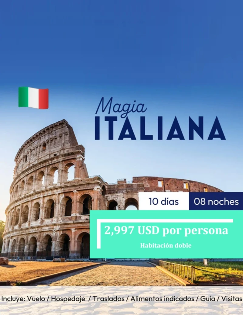 Para gozar del esplendor de la Ciudad Eterna con su mosaico de edificios, plazas y fuentes construidas a lo largo de los últimos 2000 años. Pedir tu deseo al pie de la Fuente de Trevi, apreciar una arquitectura única e inigualable del épico Panteón de Roma y por supuesto haremos una espectacular parada el monumental Coliseo Romano donde podrás hacer unas fotos espectaculares.