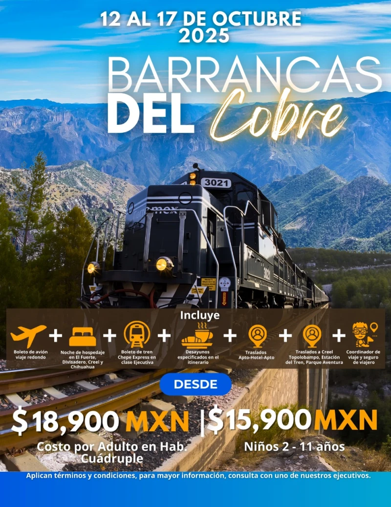🚐 Traslados a Topolobampo, a El Fuerte, a estación del tren, a Divisadero, a Parque Aventura, a Creel, a Cuauhtémoc y a Chihuahua.