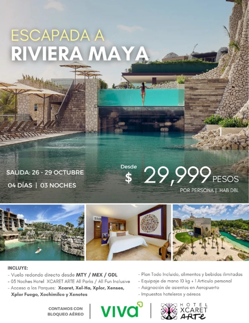 🏨 3 noches de hospedaje en Hotel Xcaret Arte.