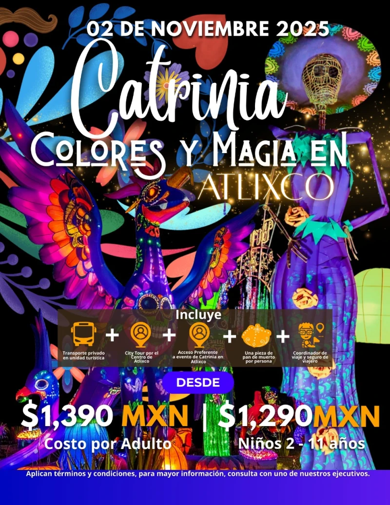🔶 Acceso preferente al evento de “Catrinia” en Atlixco.