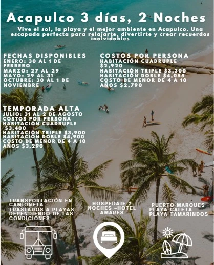 🏨 2 noches de hospedaje en Acapulco de Juárez.