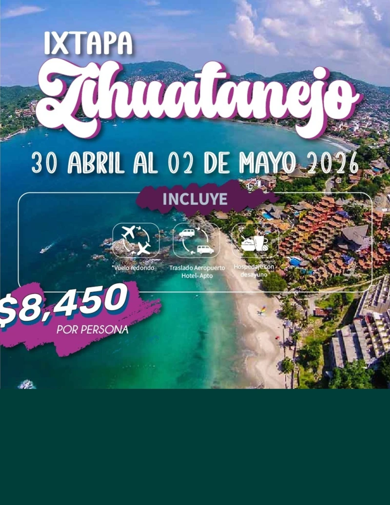 🏨 2 noches de hospedaje en Zihuatanejo con desayuno.