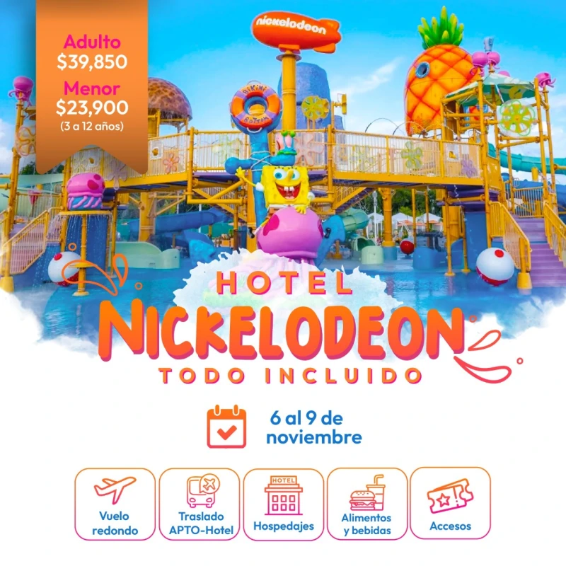 🏨 2 noches de hospedaje en Hotel Nickelodeon.